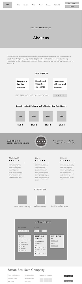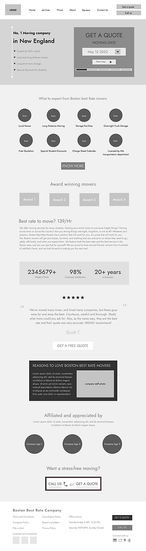 The initial homepage wireframes featured full-width text detailing services. I redesigned it to present information more visually and categorize it clearly, making it easier for users to understand the company's offerings.